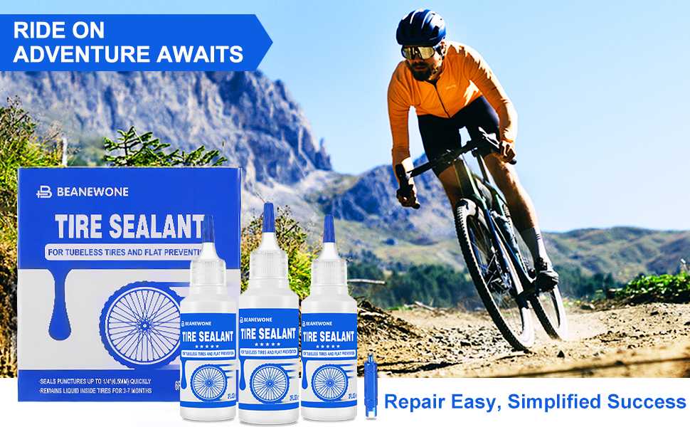 Beanewone Tubeless Tire Sealant, Tubeless Bike Sealant - 2oz per Bottle, Long-Lasting for MTB, No Tubes and Tubeless Tires. Directly Refills in Under 30s(2oz X 3 Bottles)