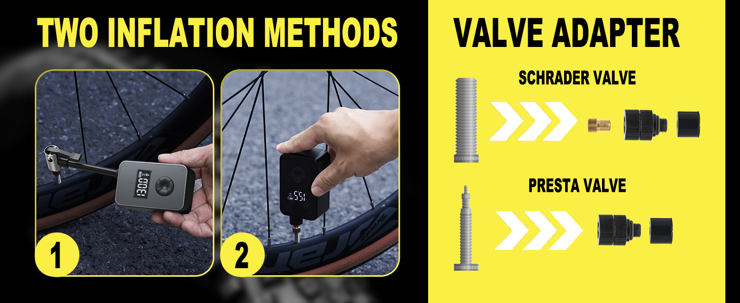 High-Pressure Rapid Inflation: Mini bike pump supports up to 130 PSI, It inflates 700×23C tire 0-120 PSI just 135 S, the high-definition digital display monitors pressure in real time for precise inflation; Automatic shut-off stops pumping when preset pressure is reached, preventing overinflation and tire damage