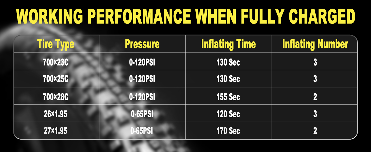 Superior Battery Life: Portable bike pump features built-in 1200mAh high-capacity lithium batteries and a brushless motor, supporting Type-C fast charging; A full charge can inflate 700x23C tires 3 times; It includes overcharge, deep discharge, and overvoltage protection; For long-term storage, we recommend charging once a month to effectively delay battery degradation