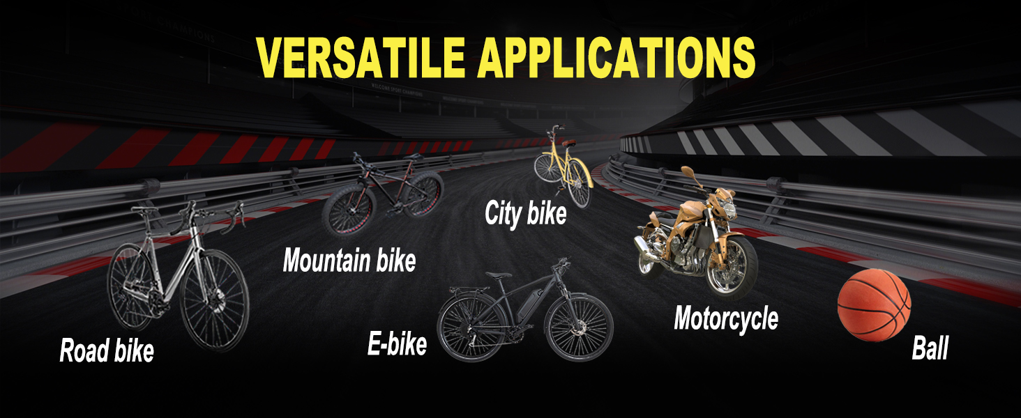 Complete Accessories: The electric bike pump comes with a heat-resistant silicone sleeve for a comfortable grip and motor protection; Also included are a Type-C charging cable, Schrader and Presta valve heads, a Presta valve adapter, a ball needle, and a seal ring; Plus, a detailed user manual ensures easy setup and operation right out of the box