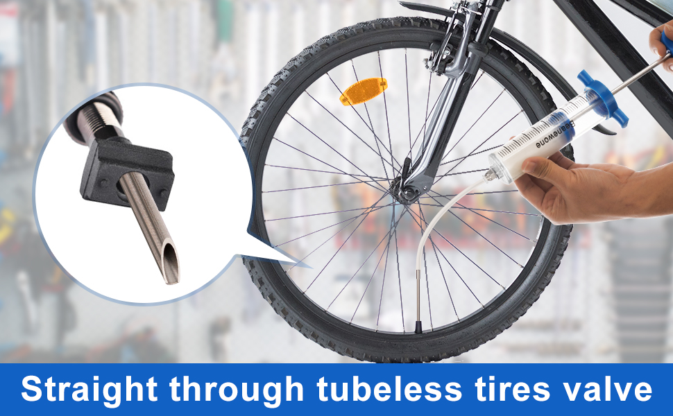 Easy to Use: Tubeless tyre sealant injector tube is up to 20cm long, easy to pass through the tubeless valve; compatible with Schrader or Presta valve core