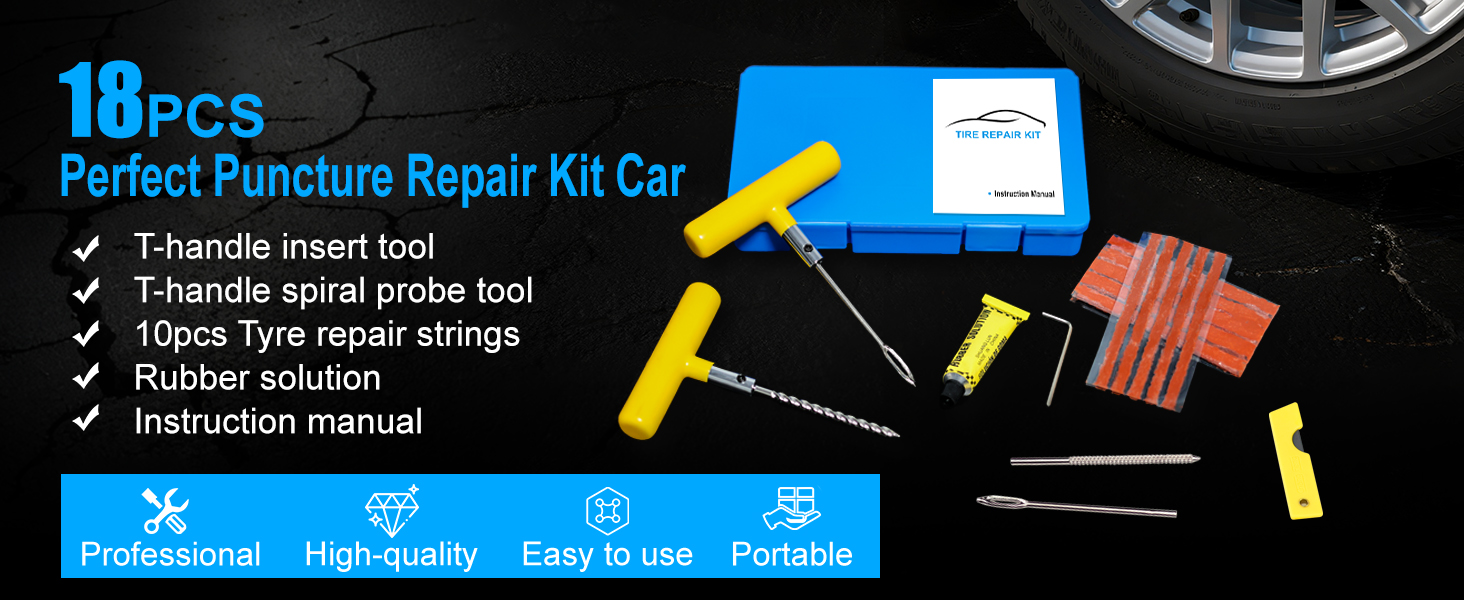 Beanewone Tire Repair Kit with Plugs , Tire Plug Kit Heavy Duty Professional for Car, ATV, Motorcycle, Truck, Flat Tire Emergency Repair (Boxed Type - 19 PCs)