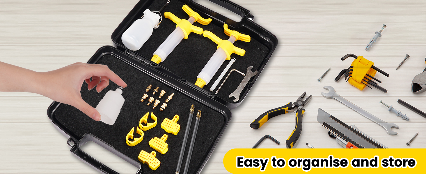 Transparent Funnel: Liquid and bubbles are clearly visible during the bleeding of bicycle brakes. Sturdy Brass Connectors: Will not break or wear out easily over time. High Quality Syringe: Anti-shedding design won't leak air or liquids, Good sealing. Can Cut The Hose As You Like: Bike brake bleeder kit with two 35 cm long hoses for different operating requirements. 150ml Mineral Oil: Can be filled and bled several times. Wider Range of Applications: Mountain Bike Brake Bleed Kit Compatible with 95% of the well-known brake models on the market.