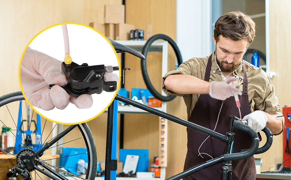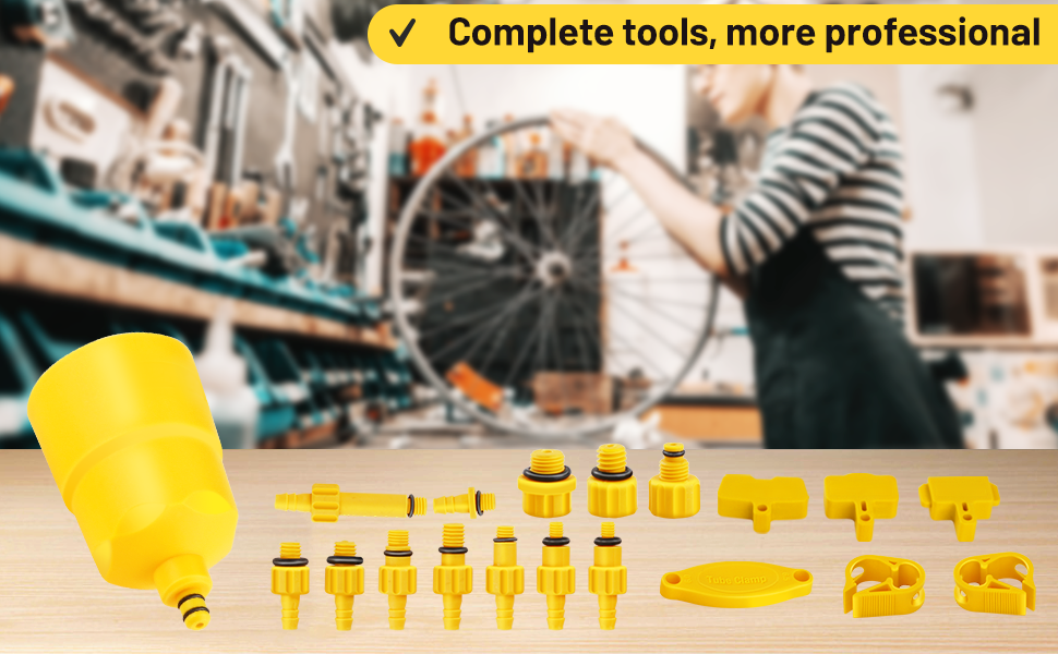 【Can Be Changed Several Times】2 x 60ml Bottles mineral oil brake fluid. 【BIKE Brake Bleed Kit】Includes 1 pair of gloves, 2 Hook and loop fasteners, Various adapters, Funnel, 2 Bleed injectors. 【Wider Range of Application】The bleed kit is suitable for well-known brake models from 2000 to 2021, With 13 oil filling fittings including funnels. 【Extra Large Funnel】35ml funnel for easier filling. 【Step By Step Instructions for Use】MTB brake bleed Kit including instruction manuals in English. Thus making bleeding an easy job.